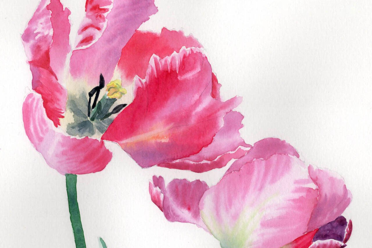 It was time to work on second colour layer – I worked again on the background first – improving the shading on the cloth. I love to add lots of brush spots to the background – creating a unique texture. Here you can see a distinctive texture on the light cloth.