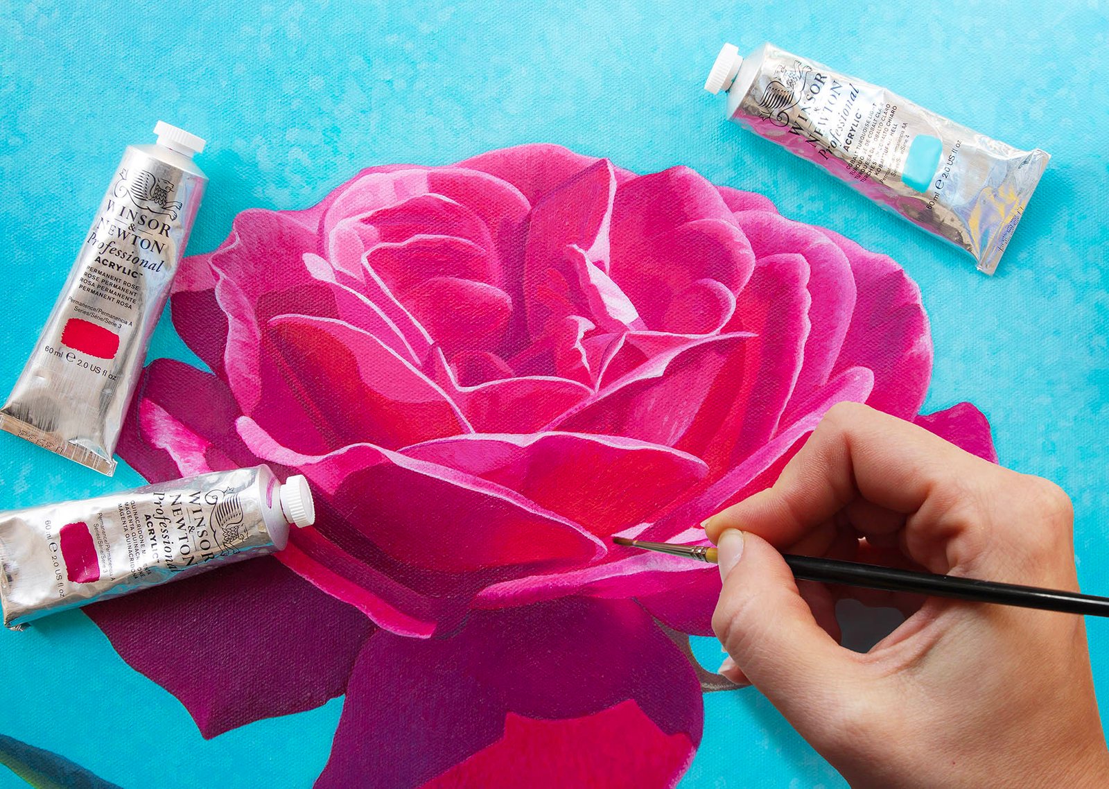 I always recommend to look for best quality paints available. Professional and Artists’ ranges have more pigment, so your colours would look more vibrant. My favourite brands: Cryla Artists’ Acrylic by Daler Rowney, Professional Acrylics by Winsor & Newton, Artist’s Acrylic by Liquitex.