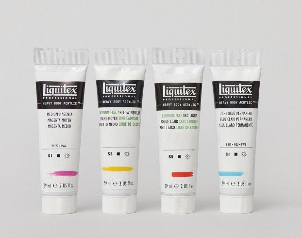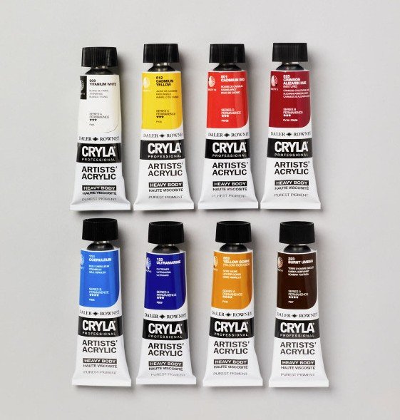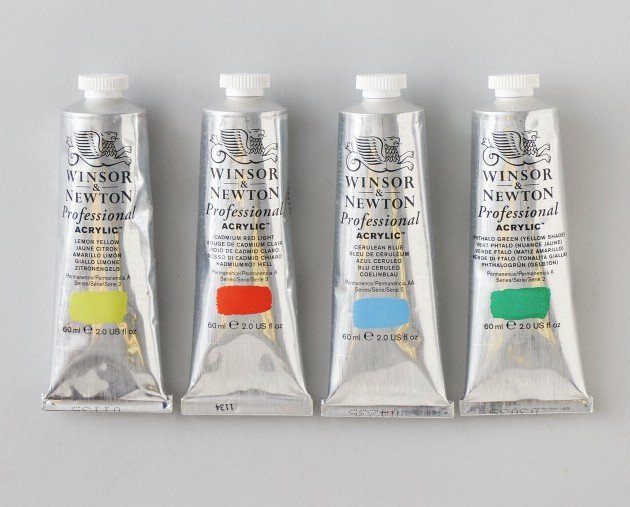 I always recommend to look for best quality paints available. Professional and Artists’ ranges have more pigment, so your colours would look more vibrant. My favourite brands: Cryla Artists’ Acrylic by Daler Rowney, Professional Acrylics by Winsor & Newton, Artist’s Acrylic by Liquitex.