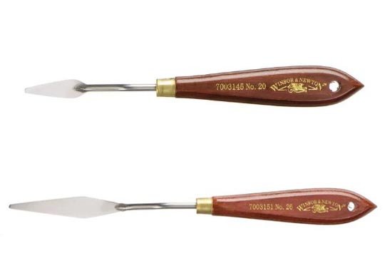 When painting with acrylic, you can also use palette knives. The use of knives means you can achieve additional effects such as straight lines and edges, multi-coloured strokes, highlighting and building up textures. They also enable you to cover a large area of canvas, quickly.