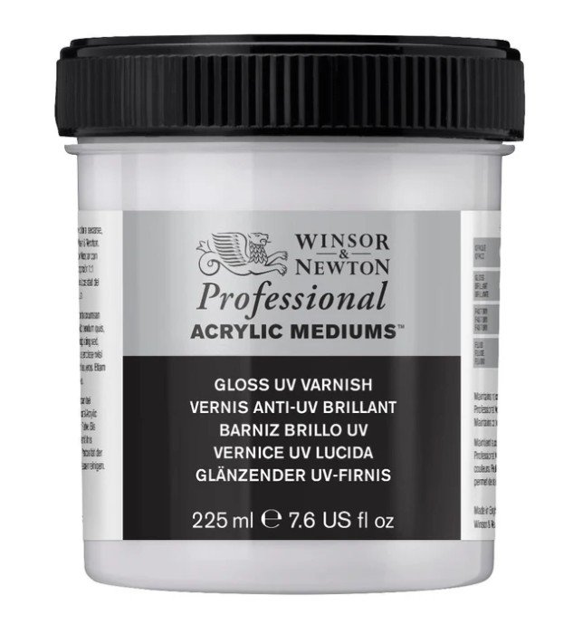 UV Varnish – shields the painting from dust, dirt, and UV damage while also providing a choice of finishes like gloss, satin, or matte. I like a very glossy surface, so I choose a Gloss UV Varnish. The colours look more intense after applying gloss varnish.
