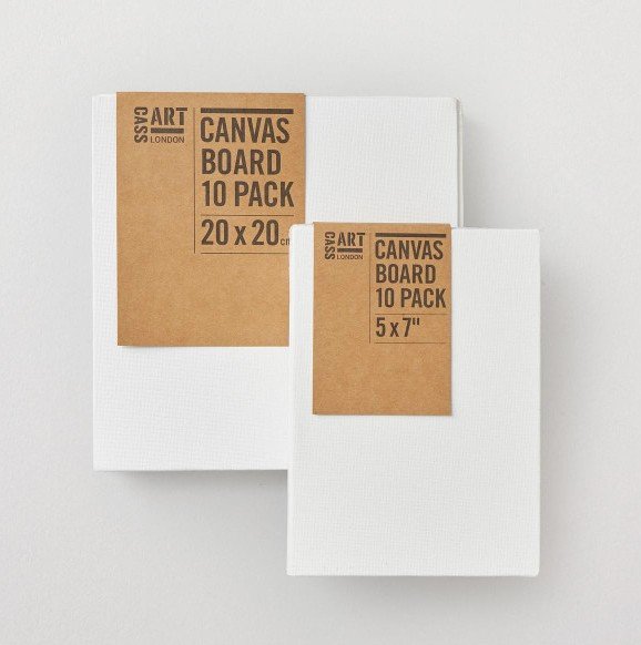 Canvas is the most popular choice, available as stretched canvas or canvas panels.