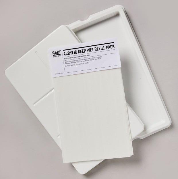 You could make your own wet palette at home from a container with a tight lid. As a membrane you could use an absorbent paper towel. On top you just put a piece of baking paper.